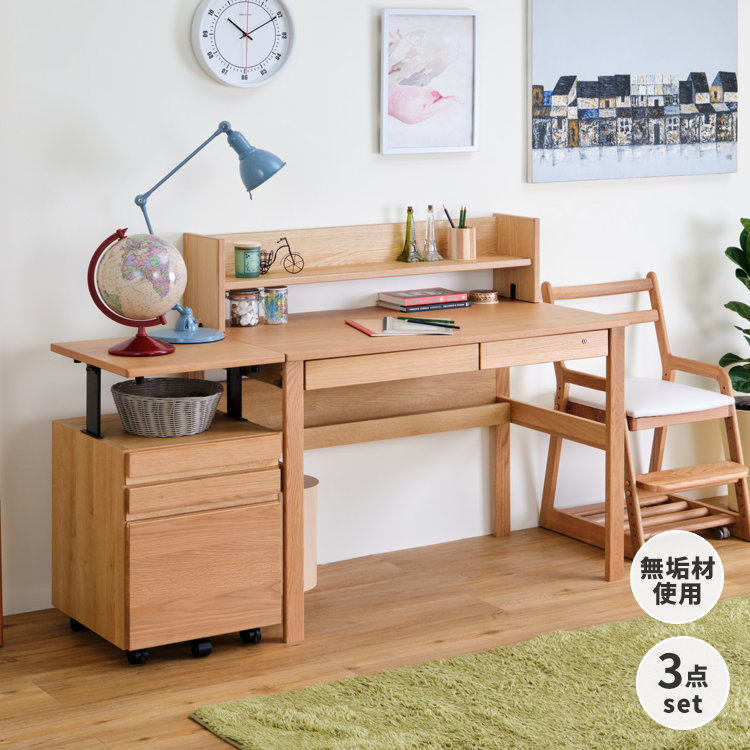 学習机 3点セット 幅100 机 上棚 ワゴン 勉強机 学習デスク 中学生 木製 キャスター付き シンプル デスク デスクセット 子供 北欧 かわいい おしゃれ 棚 オーク材 入学
