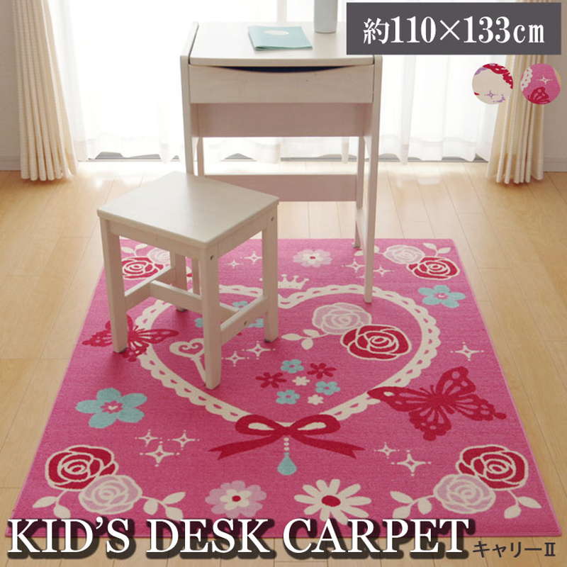 ■デスクカーペット デスクマット 学習机 足元マット 110×133cm ラグ ルームマット 女の子 子供部屋 キズ防止 可愛い ハート 花柄