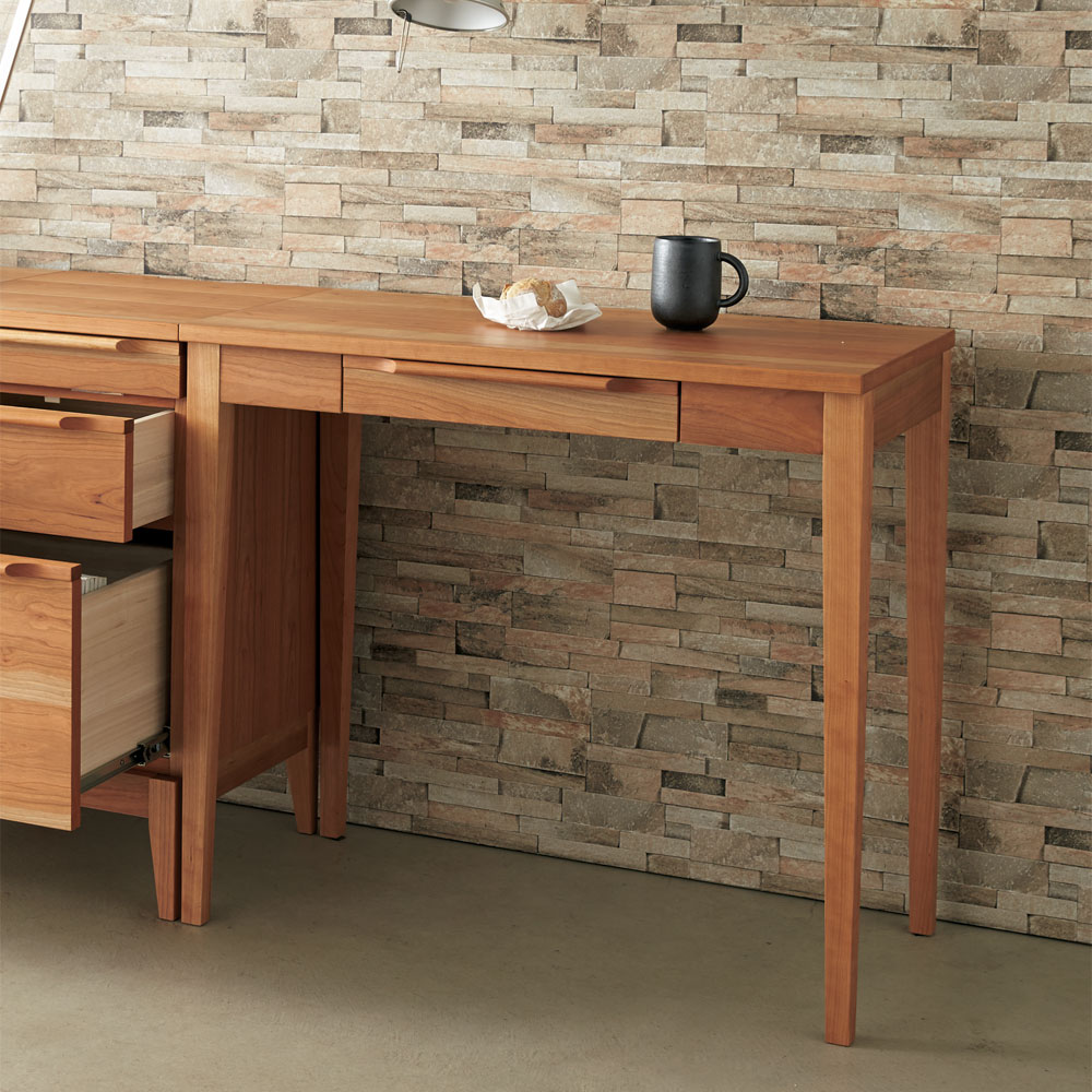 【時を刻み、味わいを育む】【チェリー天然木】思い出と共に味わい深くなる、チェリー材をふんだんに。時間をかけて使い込むほどに愛着がわいてきます。シンプルな北欧スタイルで、素材感が際立ちます。SOHOや事務所、アトリエでも使えるよう、機能性もしっかり備えたワークデスクシリーズです。