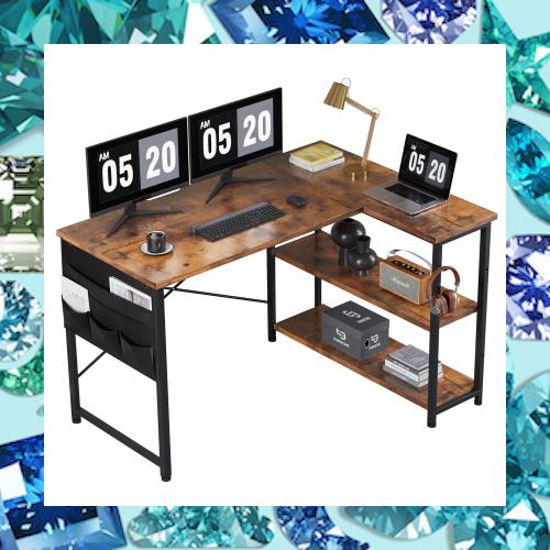 ■YeTom パソコンデスク 机 学習机 ?子 右棚左棚 幅107cm computer desk ゲーミングデスク l字デスク pcデスク 収納袋付き勉強机 b?n h?c
