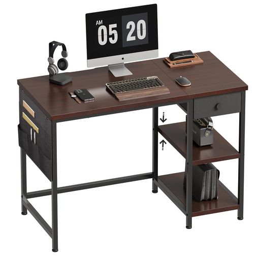 ■YETOM デスク 机 PCデスク パソコンデスク 幅100CM×奥行48CM 布製引き出し付き つくえ 収納ラック付き 収納袋付き 勉強机 学習机 左右入