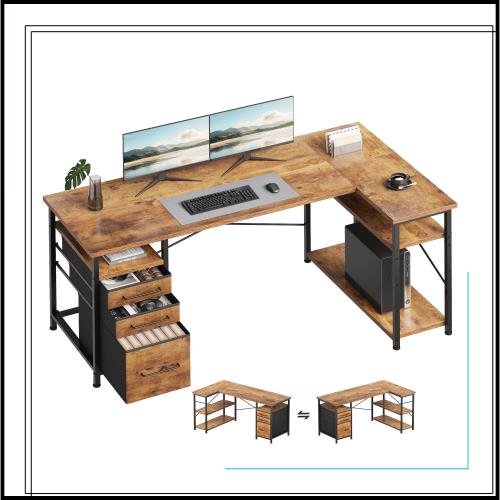 ■YETOM パソコンデスク 机 学習机 右棚左棚 幅107CM ゲーミングデスク L字デスク PCデスク 収納袋付き勉強机 コーナーデスク 本棚付き ビ