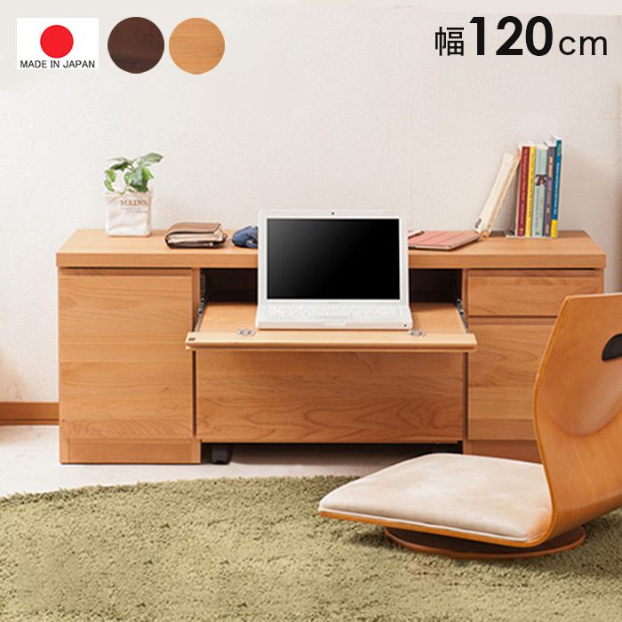 ■デスク 机 完成品 日本製 パソコン pc ローデスク パソコンデスク 収納 ロータイプ 引き出し 幅120 学習机 おしゃれ 子供 木製 ラック キ