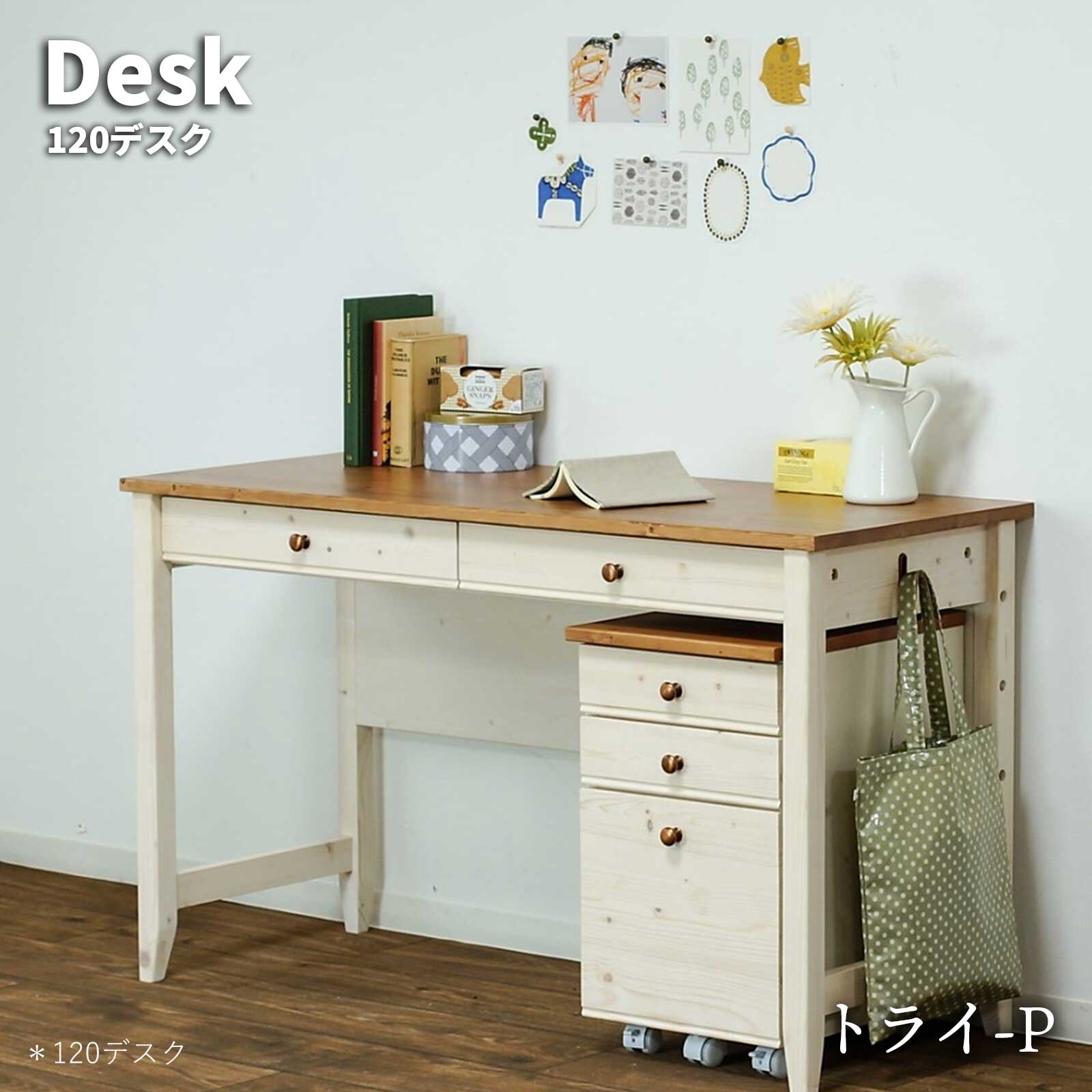 ■トライ-P 120デスク (学習机 コンパクト 引出し 収納 フック 子供 大人 パイン 無垢材 天然木 木目 木製 ナチュラル カントリー レトロ