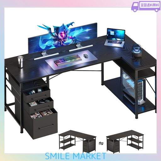 ■MAIHAIL ゲーミングデスク パソコンデスク L字デスク 机 勉強机 学習机 右棚左棚 幅140CM PCデスク コーナーデスク 本棚付き 引き出し付