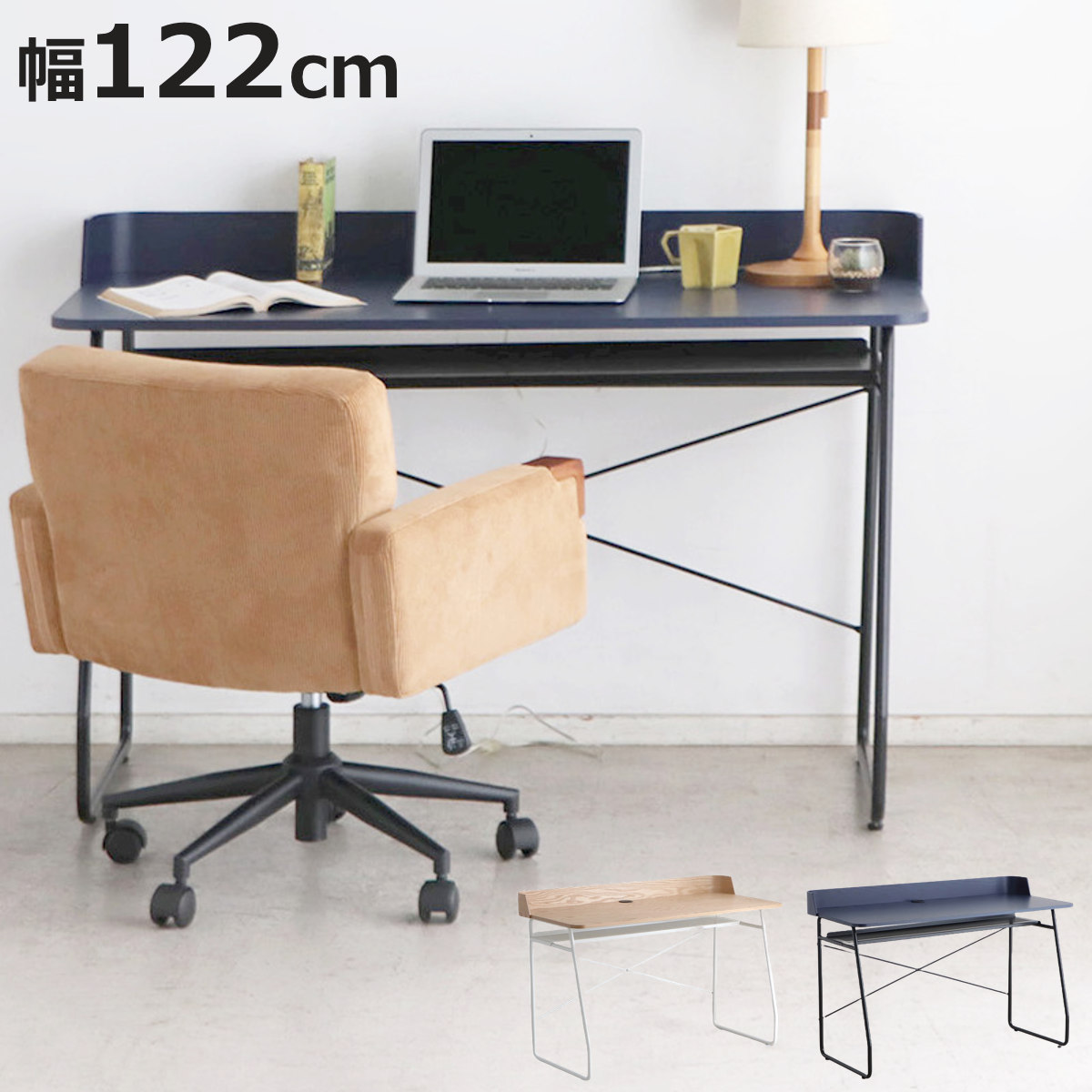 ■パソコンデスク 幅122cm 収納棚付き テスタ ( デスク 机 学習机 勉強机 棚付き 木製 天然木 PCデスク スチール脚 学習デスク 勉強デスク