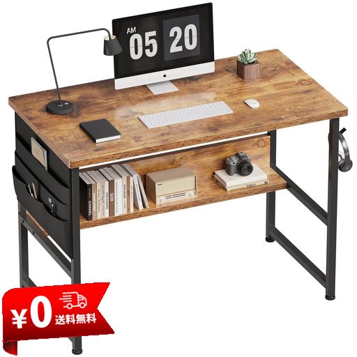 ■YETOM 机 PCデスク ラック付きデスク パソコンデスク つくえ 幅100CM×奥行50CM 収納袋付き 勉強机 デスク 下棚付き学習デスク 学習机 省