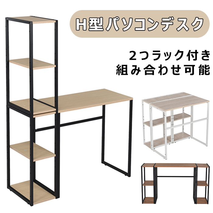■「クーポン配布中」H型 パソコンデスク オフィスデスク 学習机 収納ラック2個付き オフィスデスク 木製 ミシン台 勉強机 組合せ自由 コ