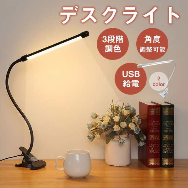 デスクライト おしゃれ LED クリップ クランプ 子供 明るい 卓上ライト 小型 オフィス 学習机 360度 回転 アーム 読書