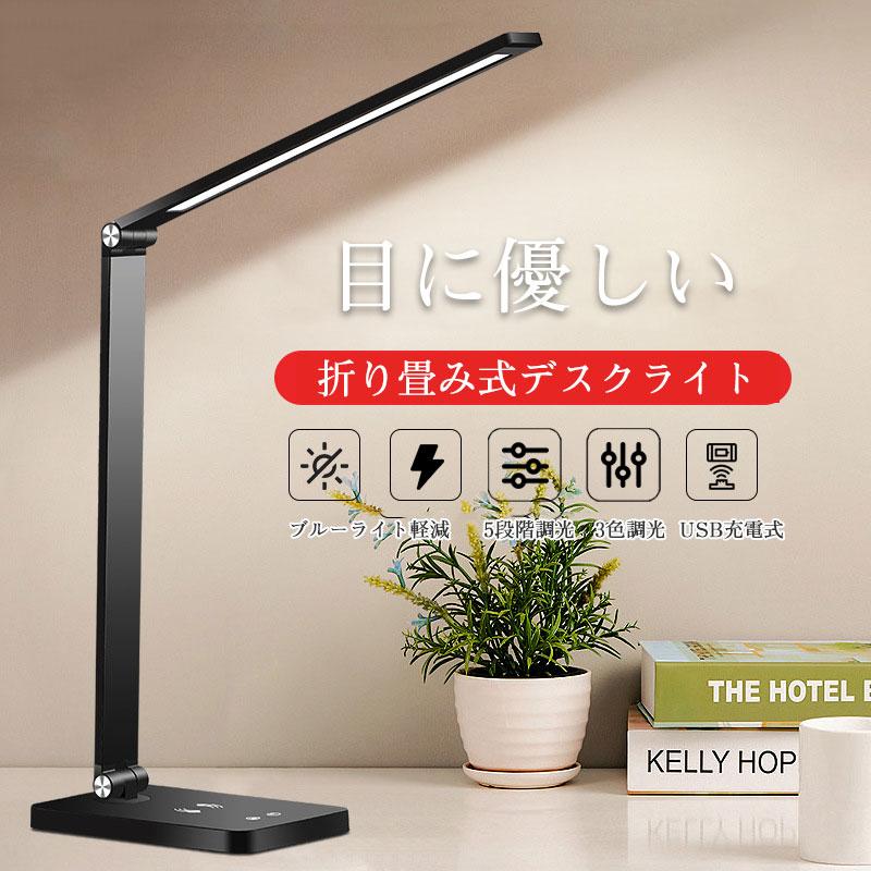 送料無料 デスクライト 学習机 コードレス おしゃれ USB充電式 ブルーライト 調光 目に優しい 卓上ライト 子供 折り畳み式 省エネ 読書灯