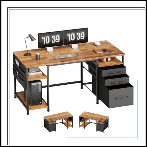 ■Maihail 机 pcデスク パソコンデスク 幅148cm×奥行50cm 勉強机 学習机 布製引き出し付き ゲーミングデスク オフィスデスク ワークデスク