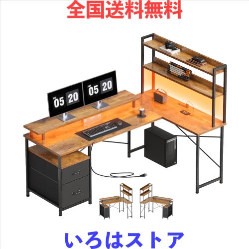 ◆商品名:Maihail l字デスク LEDライト付き 机 pcデスク desk ?子 パソコンデスク コンパクト 家具 table 学習机 引き出し付き 上収納棚付き ワー