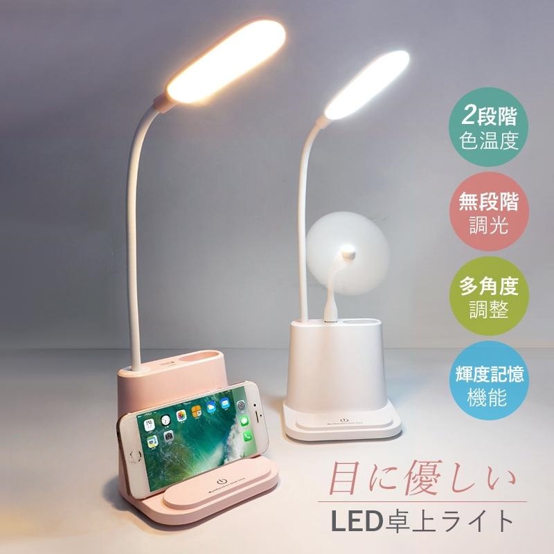 卓上ライト LED コードレス USB充電 おしゃれ デスクライト 子供 学習机 ペン収納 ファン付 卓上照明器具 目に優しい 調光調温 明るい 勉強 学習 テーブルライト