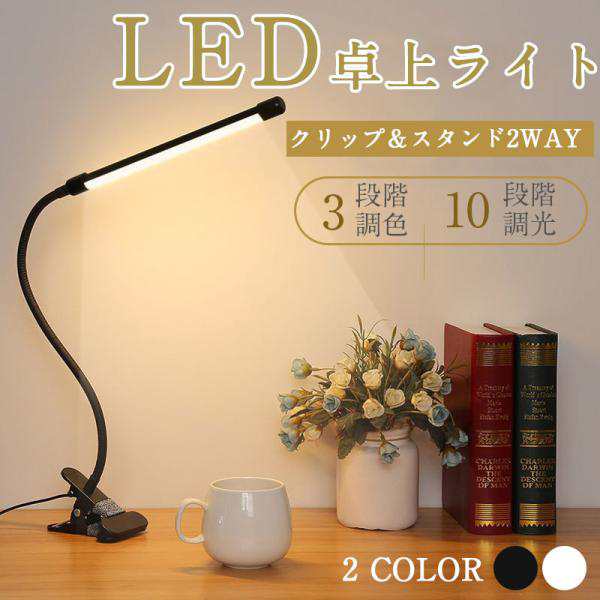 デスクライト おしゃれ LED クリップ クランプ 子供 明るい 卓上ライト 小型 オフィス 学習机 360度 回転 アーム 読書灯 ブックライト
