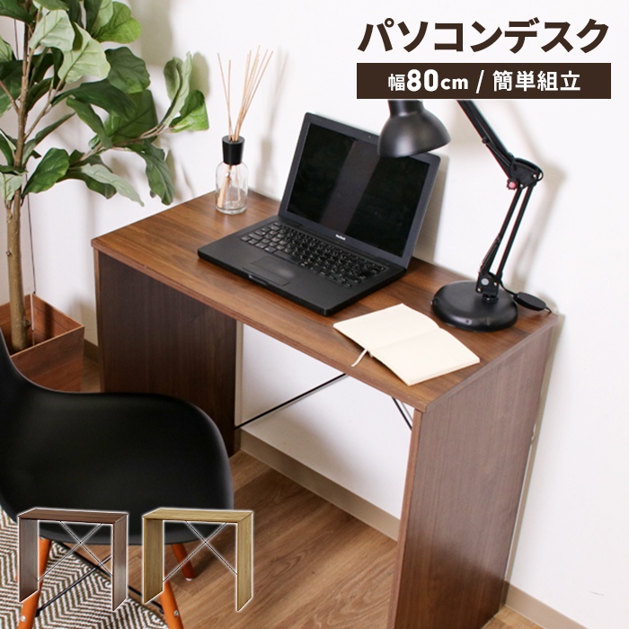 ■パソコンデスク 幅80 奥行42 工具不要 デスク ワークデスク 学習机 作業台 木目調 簡単組立 ナチュラル コンパクト 便利