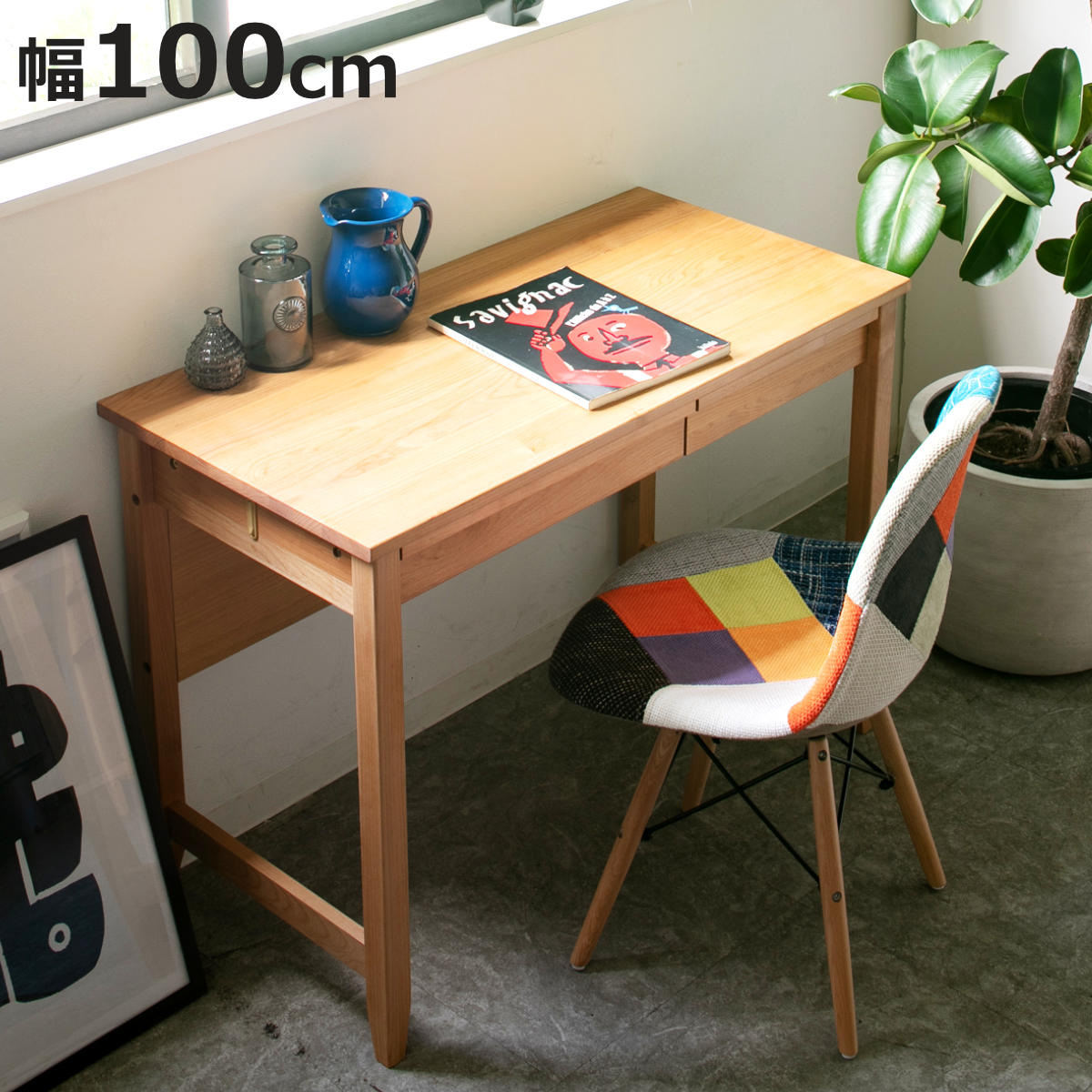 ■学習机 シンプル 幅100cm 引出し付 コンセント付 スキップ ( 勉強机 机 デスク つくえ シンプルデスク 無垢 木製 補修キット付き 日本製