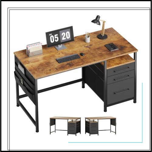■MAIHAIL 机 PCデスク パソコンデスク 幅148CM×奥行50CM 勉強机 学習机 布製引き出し付き ゲーミングデスク オフィスデスク ワークデスク