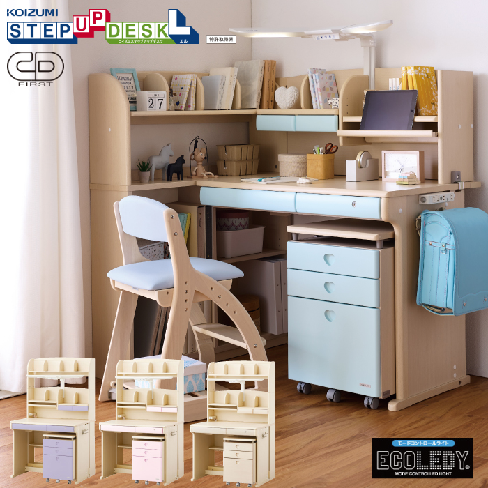 ■学習机 コイズミ 学習デスク ステップアップデスクL KOIZUMI CDファースト LEDデスクライト付き 勉強机 勉強デスク デスクライト付き 組