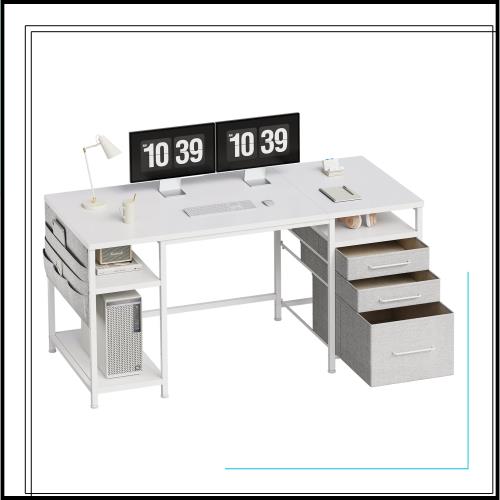 ■Maihail 机 pcデスク パソコンデスク 幅148cm×奥行50cm 勉強机 学習机 布製引き出し付き ゲーミングデスク パソコン机 収納ラック付き