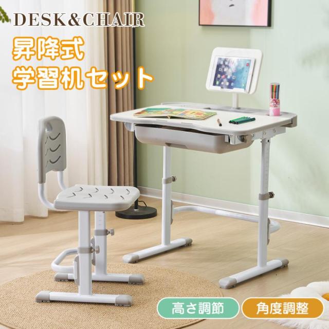 「クーポン配布中」勉強デスク 昇降式 学習机 デスク 作業デスク チェア付き 子供 高さ調整 昇降デスク 引き出し 天板 机 学生 昇降式 テレワーク デスクワーク かわいい 角度調整天板 角度調整 子供部屋 学生用 大人用 書斎 子供 新生活 シンプル