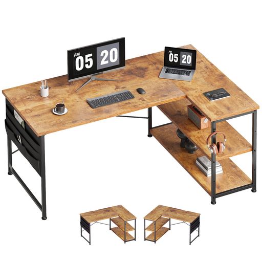 ■YETOM パソコンデスク 机 学習机 右棚左棚 幅107CM ゲーミングデスク L字デスク PCデスク 収納袋付き勉強机 コーナーデスク 本棚付き ビ