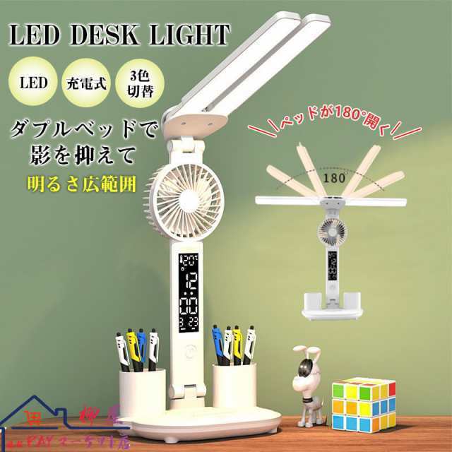 デスクライト led usb 学習机 充電式 コードレス 子供 明るい 目に優しい ledライト 勉強 倉庫 屋外 災害 非常用 ファン付きスタンド
