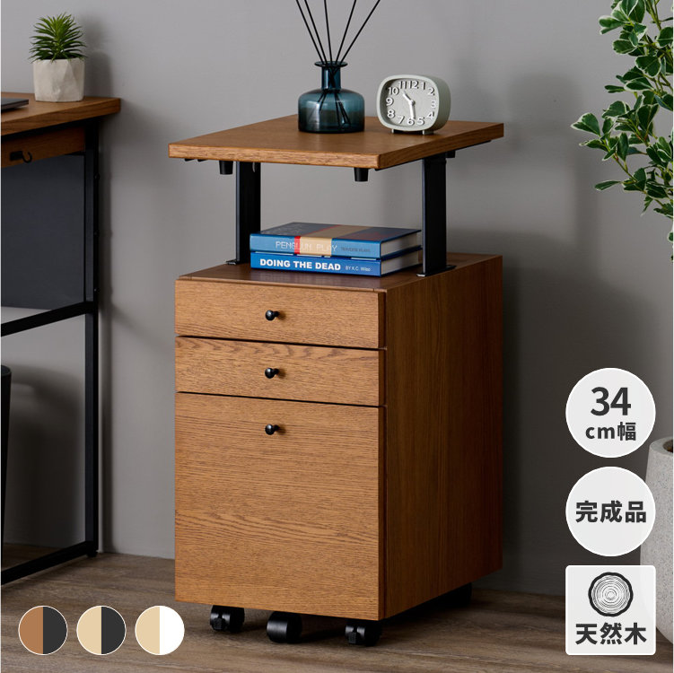 ■ワゴン デスクワゴン 学習ワゴン サイドワゴン 昇降 高さ調節 キャスター 収納 3段 引き出し デスク下 袖机 脇置き オフィス テレワーク