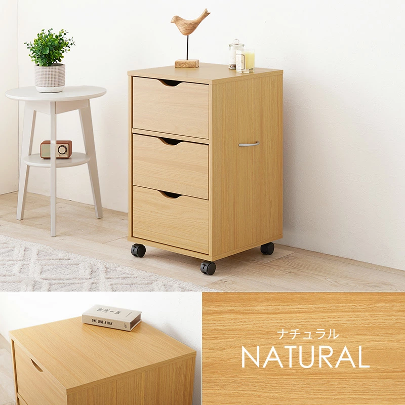 ■萩原 パソコン デスク サイド チェスト 収納 家具 キャスター付き キャビネット 収納力 大 深型 3段 幅40x奥行40x高さ67 ブラウン/ナチ