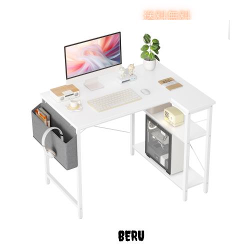 ◆商品名:TIQLAB ゲーミング パソコン L字型デスク 幅100x70cm 棚付き コーナー ワーク 勉強 作業 オフィス 在宅勤務 省スペース ホワイト