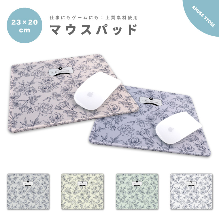 置くだけでデスクがパっ!と明るくなる、他にはない当店オリジナルデザインのマウスパッド表面の素材には滑りが良く柔らかいポリエステル生地を採用し、マウスのスムーズな移動と滑りを実現。裏面にはゴム製の滑り止め付きで、マウスを動かしても滑りにくくなっています。ヘタりやすい端部分はステッチ加工で補強、耐久性を強化しました。仕事にもゲームにも使いやすい、マウスパッドです。