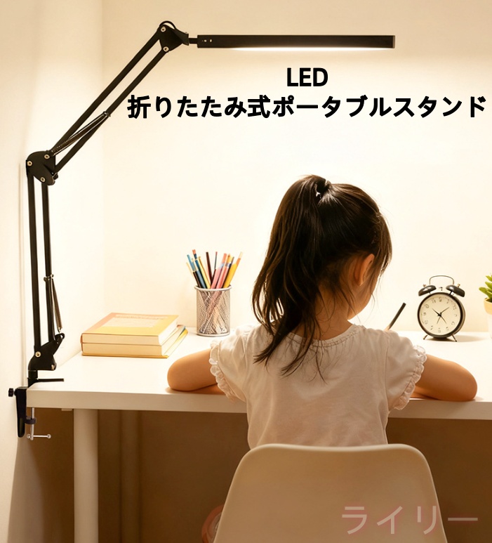 ■アーム クランプ ライト デスクライト LED 学習 読書 作業 パソコン デスク ベッドサイド 省スペース 角度調整 自由 アーム 折りたたみ