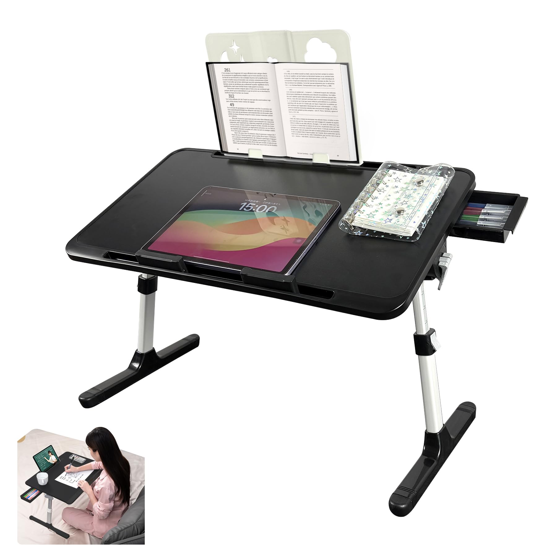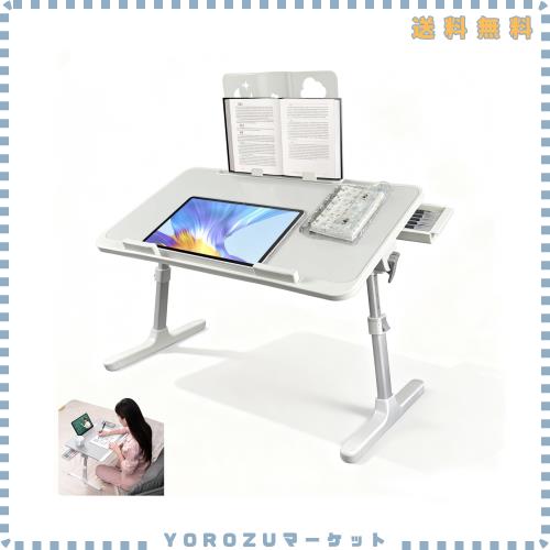 ◆商品名:WSKLY(ワスクリ) ベッド デスク ラップデスク 折りたたみテーブル ちゃぶ台 大容量天板 角度 高さ調整 引き出し ブックスタンド付き 45kg
