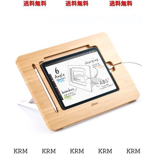 ■ELETIUO 調節可能なタブレットスタンド 鉛筆&充電ケーブルスロット付き 竹製木製スタンド 複数の角度 引き出し用オーガナイザー デスク