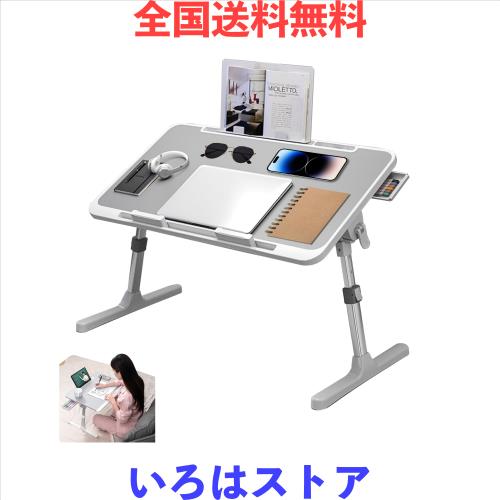 ◆商品名:WSKLY(ワスクリ) ベッド デスク ラップデスク 折りたたみテーブル ちゃぶ台 大容量天板 角度 高さ調整 引き出し ブックスタンド付き 45kg