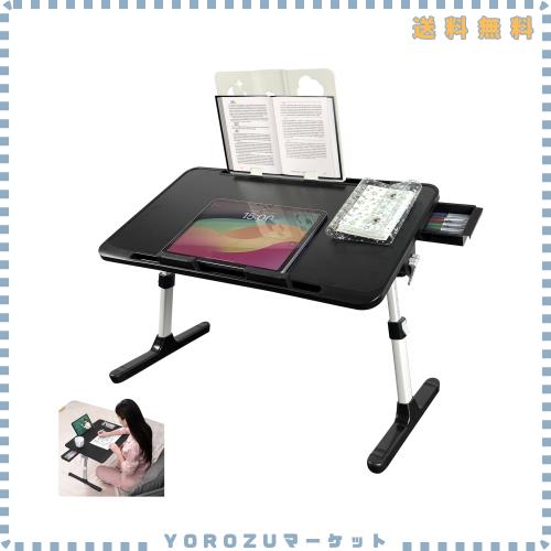 ■WSKLY(ワスクリ) ベッド デスク ラップデスク 折りたたみテーブル ちゃぶ台 大容量天板 角度 高さ調整 引き出し ブックスタンド付き 45kg