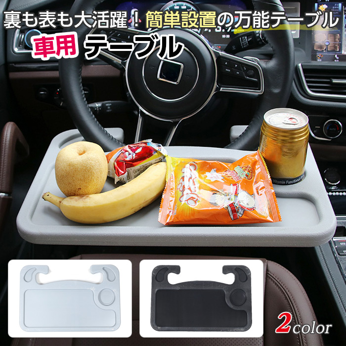 車用テーブル [2色からご選択] デスク 自動車 ハンドル 簡単取付 車内 運転席 荷物置き 食事 飲み物 ドリンクホルダー パソコン スタンド プレート トレイ おしゃれ シンプル 書類整理 両面使用可能 車用 カーアクセサリー ブラック グレー 新品 送料無料