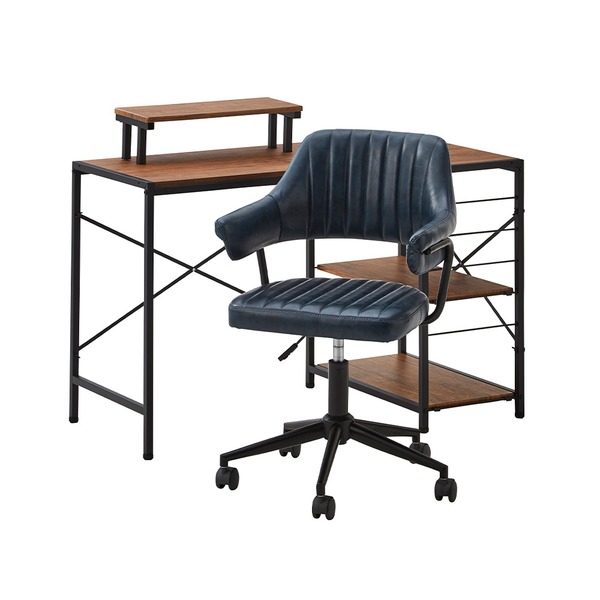 ■デスク (テーブル 机) チェア (イス 椅子) セット パソコン PC デスク 約幅110cm ウォールナット オフィス 事務用 チェア ネイビー ガス