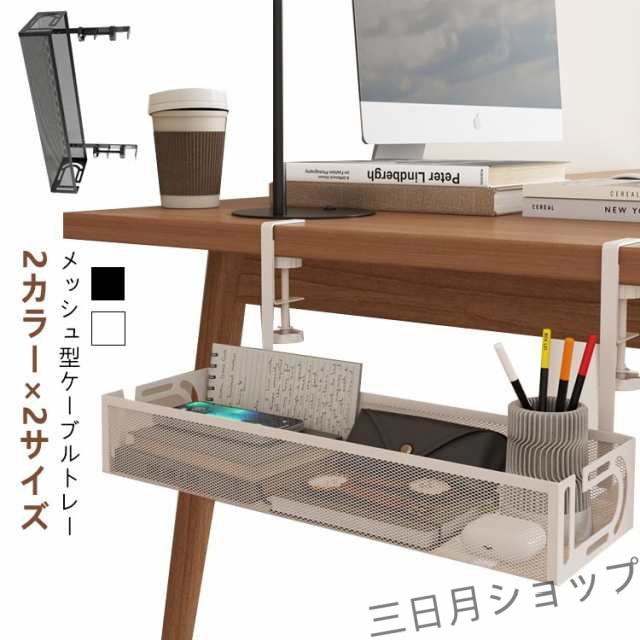 メッシュ型 ケーブルトレー クランプ式 白 黒 ケーブルオーガナイザー デスク下 ケーブル 配線 コード 延長コード 収納 デスク パソコン pc 配線隠し ケーブルトレイ ケーブルボックス コンセントボックス 机の下 収納ボックス ホワイト ブラック