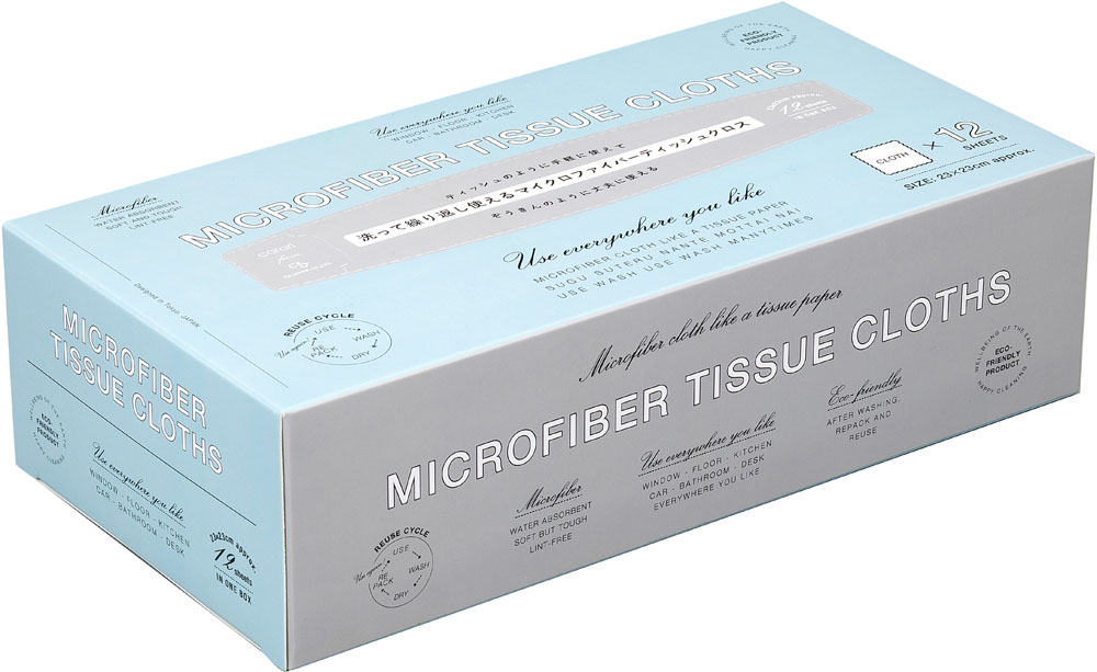 洗って繰り返し使えるクロス。マイクロファイバーが油汚れやホコリをすっきり落とし、水分も素早く吸水。車内のお掃除からデスク周りの細かい部分の拭き掃除まで大活躍。使い捨てではなく洗って繰り返し使用出来る。箱は横から開ける事が出来るので、補充してまた使うことが出来ます。