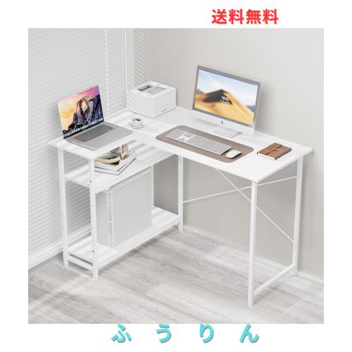 ◆商品名:MIYOKI L字デスク パソコン デスク 幅110×奥行48×高さ75cm 左右入替え可能 l字型 コーナー ゲーミング 収納ラック付き 棚板高さ調節可