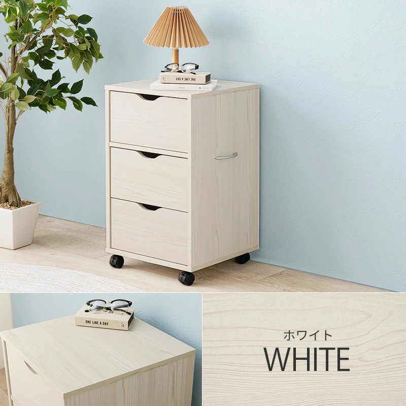 ■萩原 パソコン デスク サイド チェスト 収納 家具 キャスター付き キャビネット 収納力 大 深型 3段 幅40x奥行40x高さ67 ブラウン/ナチ