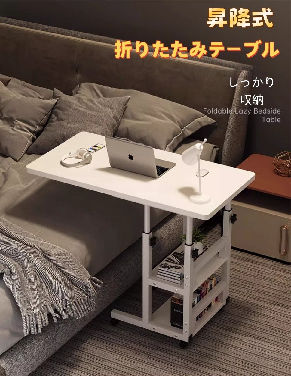 ■サイドテーブル ベッドテーブル パソコン デスク 学習テーブル 移動式 昇降式テーブル おりたたみサイド テーブル 高さ調節可能 収納