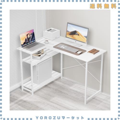 ◆商品名:MIYOKI L字デスク パソコン デスク 幅110×奥行48×高さ75cm 左右入替え可能 l字型 コーナー ゲーミング 収納ラック付き 棚板高さ調節可