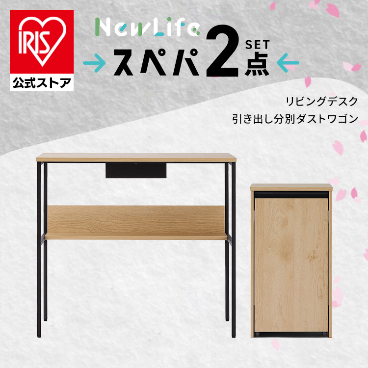 ■新生活 家具 2点セット 一人暮らし PCデスク パソコン デスク コンパクト 机 幅80 ゴミ箱 キャスター付き 分別 目隠し 収納 棚 おしゃれ