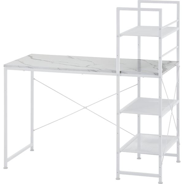 ■パソコン PC デスク (テーブル 机) ワークデスク 約幅1100mm ストーン 高さ調節可 左右組み換え ラック付き デスク お客様組立品 リビン