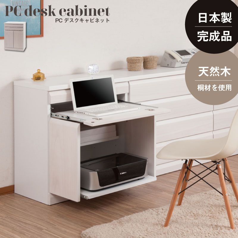 ■パソコンデスク デスク 幅60 収納 おしゃれ 完成品 日本製 スリム ハイタイプ 机 プリンター収納 パソコン PCデスク 折りたたみ キャビネ