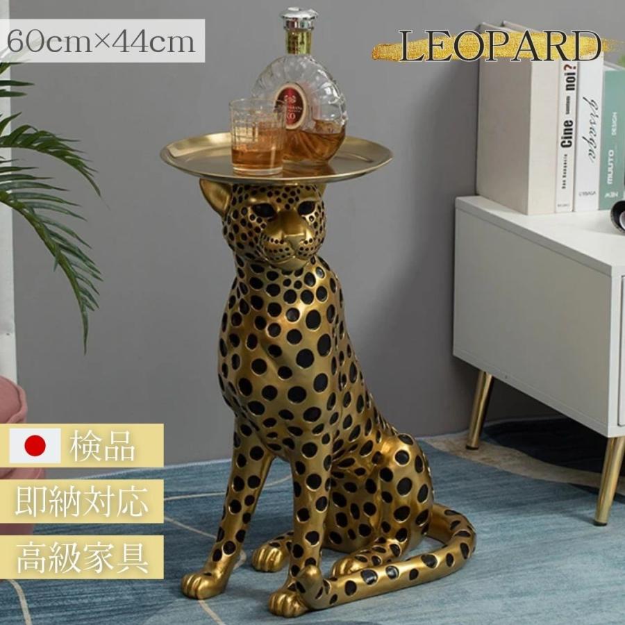 ■テーブル 置物 ヒョウ ゴールド 豹 特大サイズ 金属テーブル付き サイドテーブル 高さ 布団テーブル テレワーク おしゃれ 在宅 パソコン