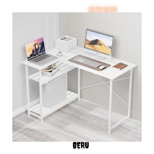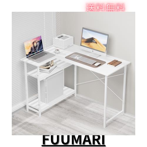 ◆商品名:MIYOKI L字デスク パソコン デスク 幅110×奥行48×高さ75cm 左右入替え可能 l字型 コーナー ゲーミング 収納ラック付き 棚板高さ調節可