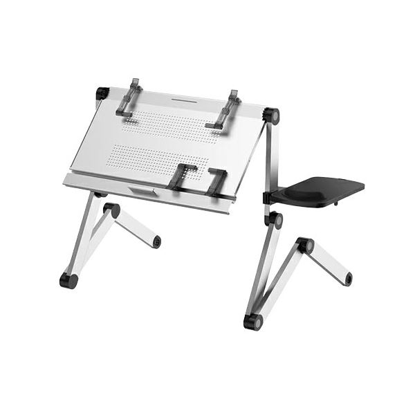 ●本商品は仕入元より配送となるため、沖縄・離島への配送はできません。 ●カラー:シルバー ●素材:アルミニウム合金 ●使用方法:本PCスダンドは、360°調整ジョイントが設置しえており、自在に変形するヒミツは、4つのジョイント!最大360°まで微調整が可能なので、思いのままにデスクの形を変えることが出来ます。天板のジョイントは、片側だけについており、ツメを倒すことで自由に調整が可能です。お好みの角度になりましたら、ツメを元の状態に戻してください。3つのアームジョイントには、角度表示があります。左右のジョイントの角度を合わせて頂くと、簡単に左右対称に設置することが可能です。なお、中央のボタンを押し込んでいる間、自由にアームの角度を調整頂けます。調整完了後は、ボタンから手を離して頂くと、再びロック状態に戻り、アームが固定されます。