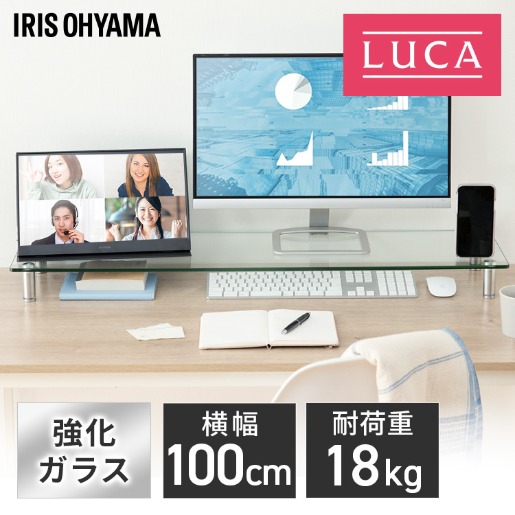 ■★クーポンあり★ モニター台 モニタースタンド パソコン モニター台 モニター台ガラスタイプ W1000 MNS1000G アイリスオーヤマ 横幅100c